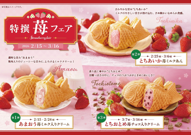 約10日ごとに期間限定の苺たい焼きが登場!
